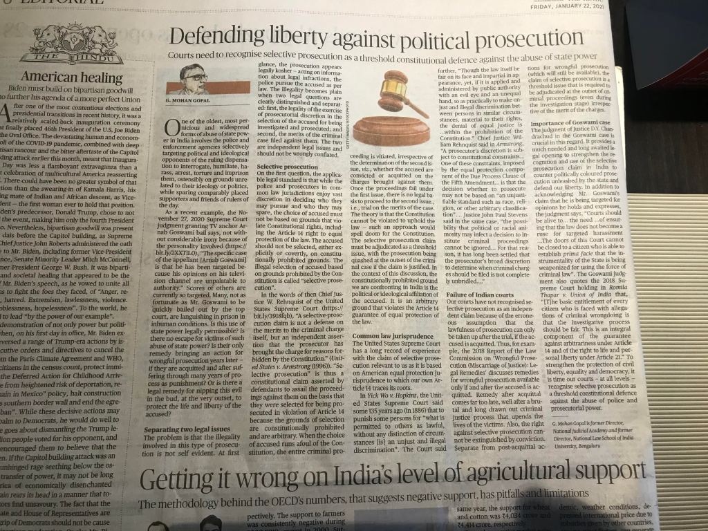 Defending Liberty Against Political Prosecution: Hindu Op-Ed, Jan 2021 prof. g. mohan gopal Law January 30, 2021May 31, 2021 1 Minute Share this: Click to share on X (Opens in new window) X Click to share on Facebook (Opens in new window) Facebook Like Loading... Related Published by prof. g. mohan gopal View all posts by prof. g. mohan gopal Published January 30, 2021May 31, 2021